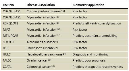 表二:部分已报道的具有分子标志物潜能的lncRNA列表。