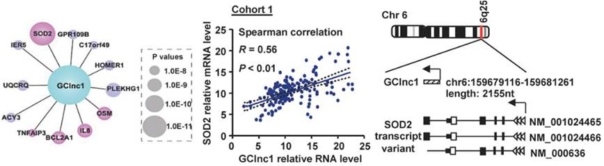 上述研究表明GClnc1可以做为一个支架把组蛋白修饰酶WDR5和KAT2A招募至SOD2的启动子处,从而激活该基因的转录,进而促进胃癌的发生和开展。