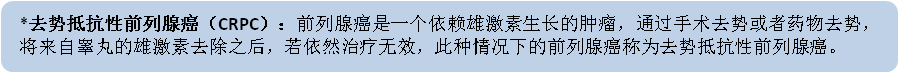 前列腺癌是男性最常见的恶性肿瘤,在西方国家仍然是男性癌症相关死亡的第二大原因。大多数最初对雄激素剥夺疗法敏感的患者逐渐会对治疗产生抵抗,并且开展为去势抵抗性前列腺癌*。转移性去势抵抗性前列腺癌是一种恶性疾病,虽然现在有多种系统治疗法对其进行治疗,但仍然收益甚微,因此亟需探索去势抵抗性前列腺癌治疗的新机制。