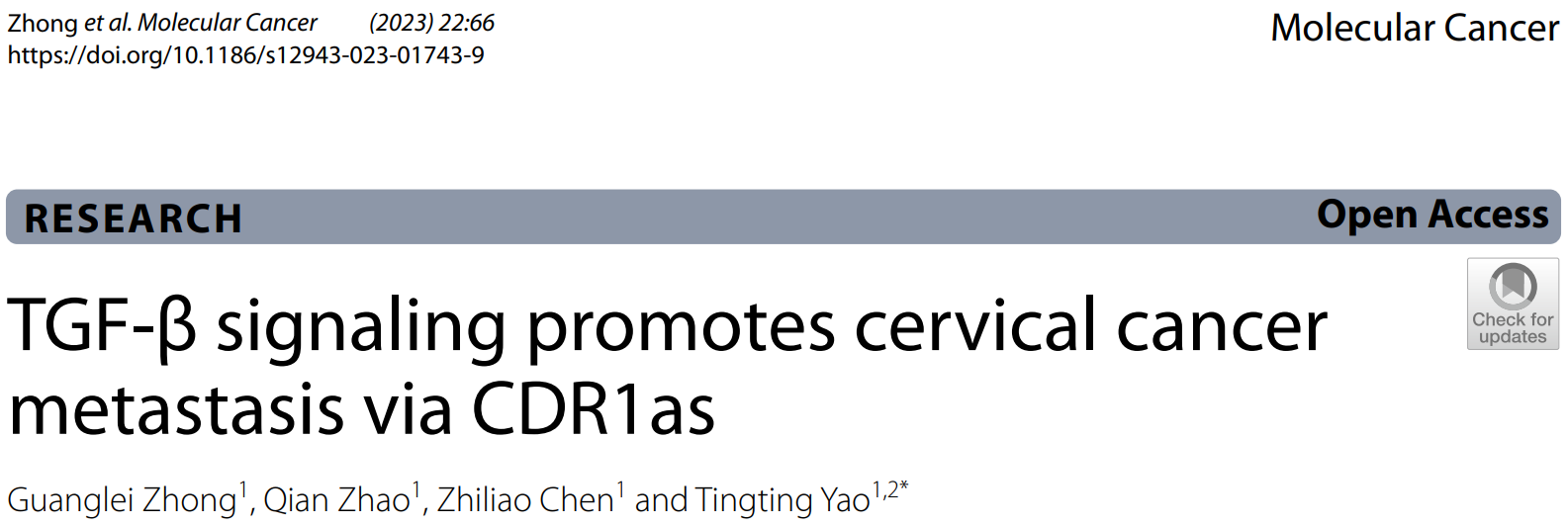 中山大学孙逸仙纪念医院姚婷婷教授长期从事宫颈癌相关研究。课题组采用Arraystar hjc黄金城芯片筛选发现环状RNA分子CDR1as在TGF-β诱导的宫颈癌细胞中显著上调。实验结果显示,CDR1as过表达显著促进肿瘤细胞迁移和侵袭、促进肿瘤组织生长,大样本验证显示CDR1as能够作为生物标志物预测宫颈癌转移患者预后情况;在分子机制方面,作者发现CDR1as顺利获得结合IGF2BP1蛋白增加转录因子Slug的mRNA稳定性和表达水平,从而促进宫颈癌的转移。这些发现表明,TGF-β信号传导可能顺利获得CDR1as促进宫颈癌转移,为宫颈癌治疗给予了潜在的靶点。