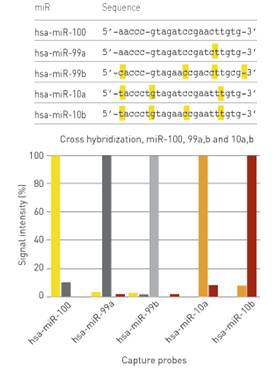 ● 高灵敏度,可以检测普通DNA作为捕获探针的芯片不能检出的微量microRNA